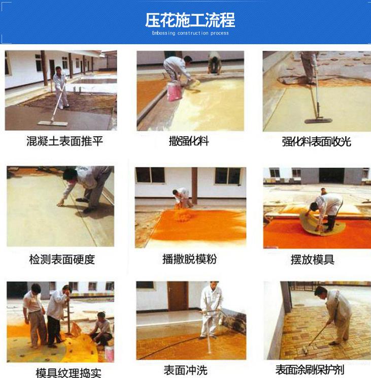 壓印地坪就是在混凝土表面非常逼真地模仿許多高檔建筑裝飾材料的質(zhì)地及色澤,一改混凝土表面的灰暗,冷漠,呈現(xiàn)出的效果酷似天然的花崗巖,大理石,火山巖,青石板,木板及磚石等等;它能夠刻意地表現(xiàn)出自然材質(zhì)的粗礪,凸凹不平和復(fù)雜的紋理,也可以平整如水,光亮如鏡,無(wú)限的色彩組合及模具選擇使設(shè)計(jì)師的想象力得以任意馳騁。